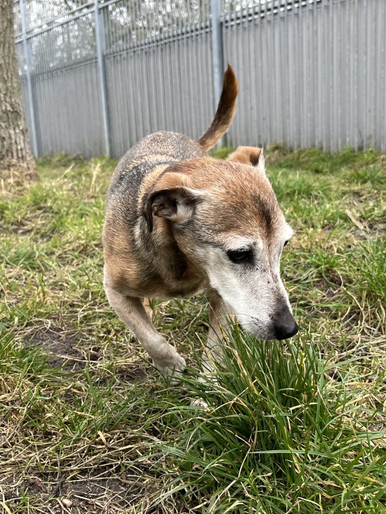 Hij kwam, en zag en overwon. We kunnen het niet anders zeggen: Bono heeft onze harten gestolen! Een gecastreerd Jack Russel reutje met de respectabele leeftijd van 16 jaar. Bij binnenkomst erg mager en met een ach gossie uitstraling. Dat laatste heeft hij nog steeds wel, het blijft natuurlijk een oud manneke, maar hij is mooi aangekomen en in bezit van een positieve levenshouding: elke dag is de moeite waard, is er nog wat lekkers?!