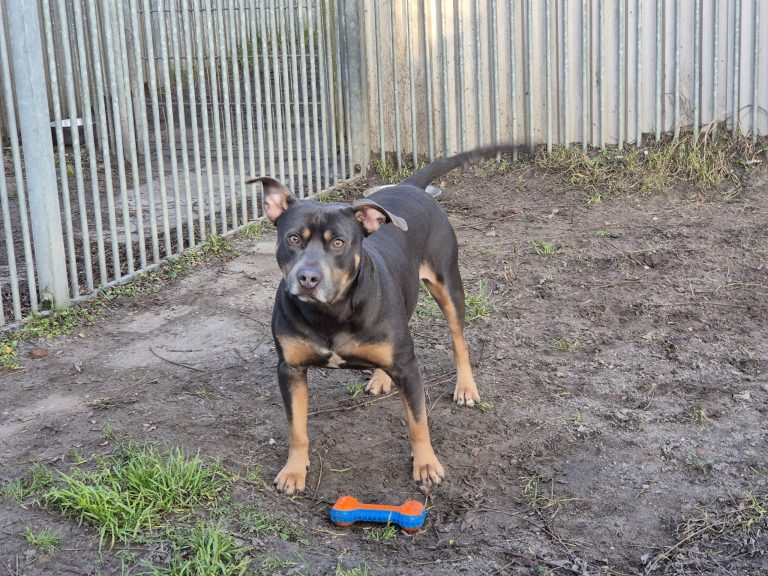King is een knappe kruising Amerikaanse Stafforshire Terrier – Bullytype, een gecastreerde reu met geboortedatum: 21-05-2020  en uitgevoerd in bleu and tan. Na een poosje van plaatsing is hij weer terug in het asiel. Door omstandigheden was het niet langer mogelijk om hem mee te nemen naar het werk, en dus is hij opnieuw op zoek naar een goed thuis.