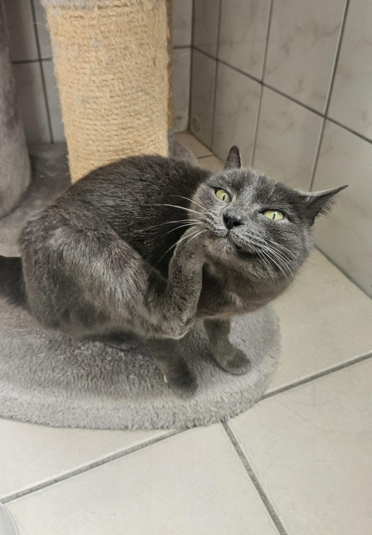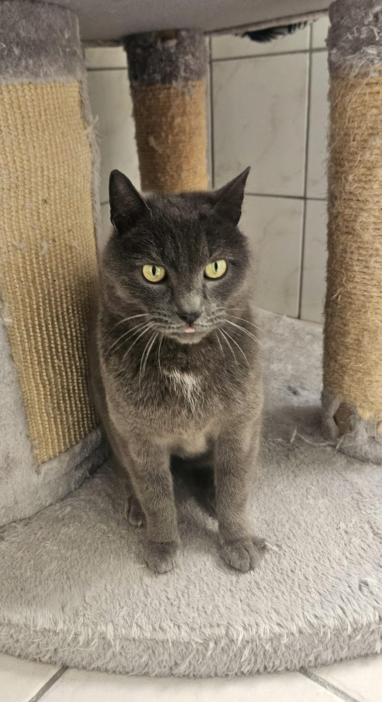 Syra is een knappe donkerblauw (grijze) poes met een klein wit borstvlekje. Keurig gecastreerd, geboortedatum: 19-06-2018. Het is al even geleden dat we haar binnenkregen. De vinder had haar al eerder aangemeld maar katje vangen bleek niet zo eenvoudig. Eenmaal gelukt bleek ze een chip te hebben en jaren geleden van huis verdwenen te zijn. Er is contact geweest met de eigenaar, helaas was er geen optie om haar terug in huis te nemen en is ze in onze zorg gebleven.